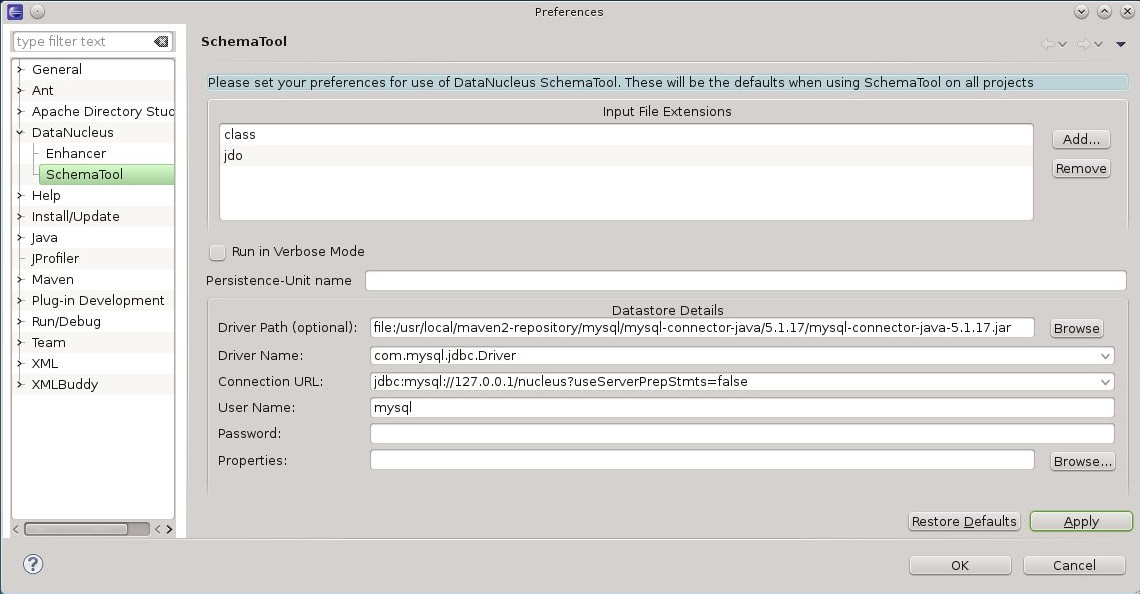 jdo eclipse prefs schematool